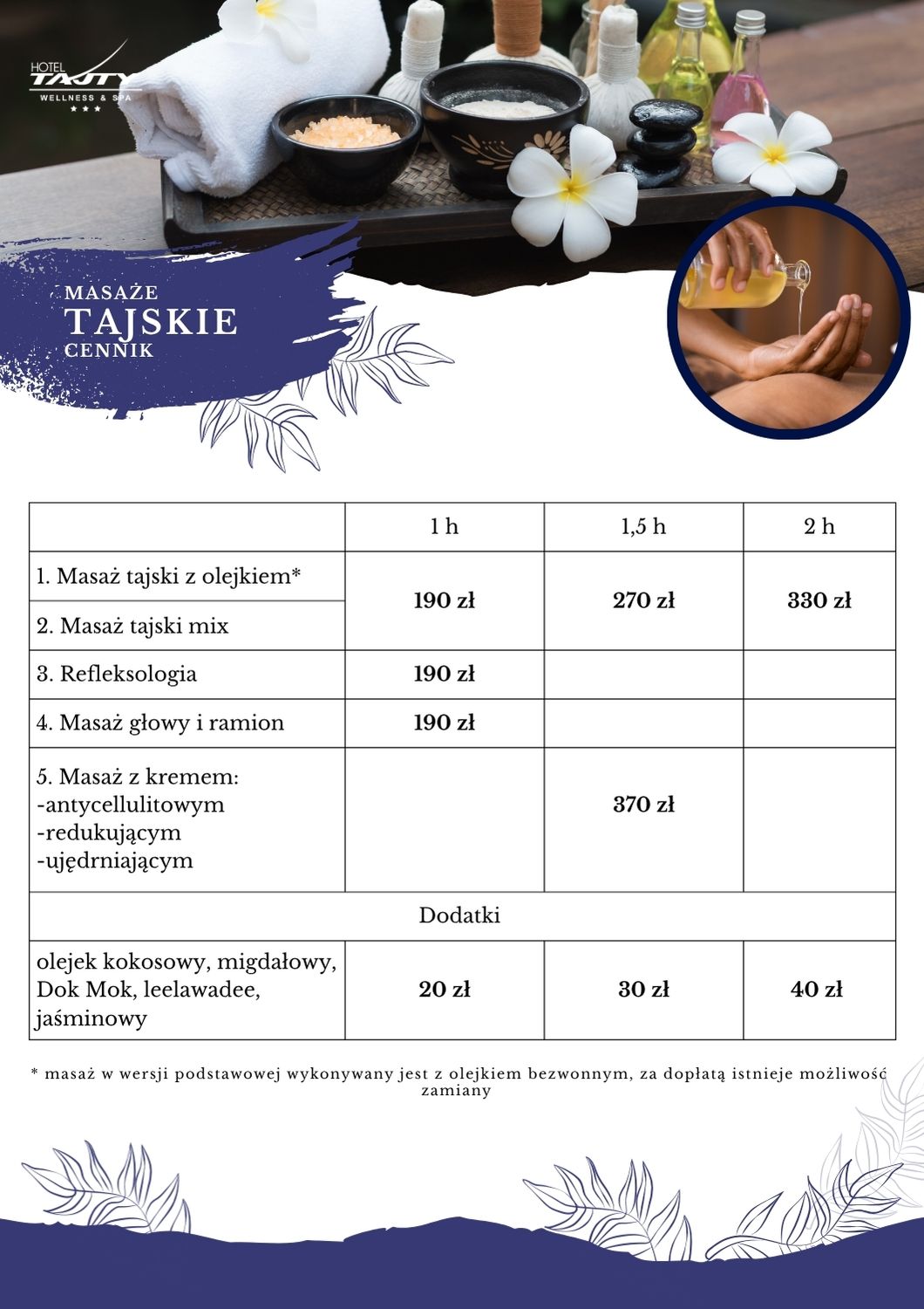 Klikając ZAAKCEPTUJ WSZYSTKIE, wyrażasz zgodę na korzystanie z technologii takich jak cookies i na przetwarzanie przez HOTEL TAJTY - SPÓŁKA Z OGRANICZONĄ ODPOWIEDZIALNOŚCIĄ, ul. Przemysłowa 17, Wilkasy, 11-500, Giżycko , Twoich danych osobowych zbieranych w Internecie, takich jak adresy IP i identyfikatory plików cookie, w celach analitycznych i marketingowych (w tym do zautomatyzowanego dopasowania reklam do Twoich zainteresowań, mierzenia ich skuteczności oraz przetwarzania danych użytkownika dla celów analitycznych). Zmiany ustawień plików cookies oraz szczegółowe preferencje dotyczące zgód możesz dokonać w ustawieniach.